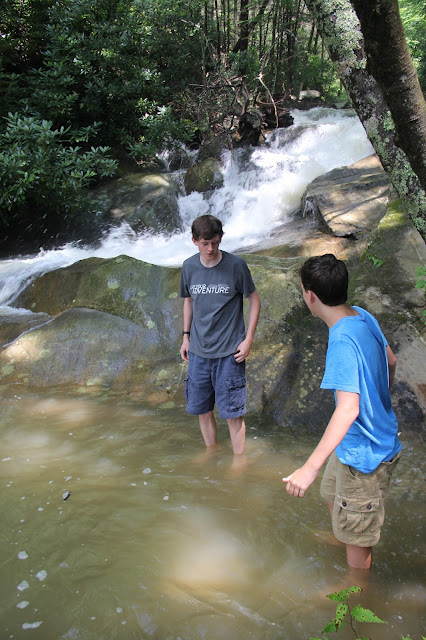 At last, almost two miles and perhaps eight hundred feet in elevation later, the boys reached the falls. The vigorous pace and newly emergent sun prompted them to seek cooler climes in the pool which formed mid-fall.